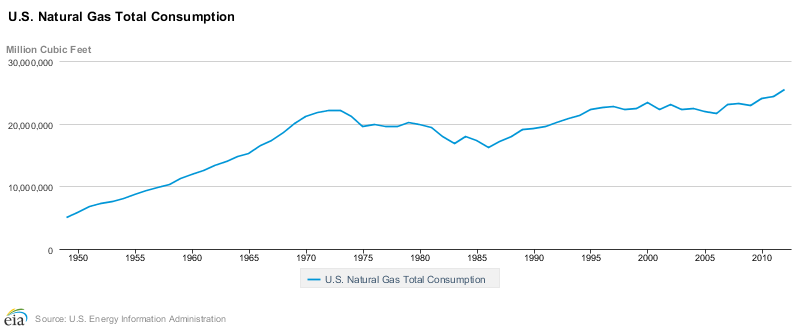 Veamos cómo ha evolucionado el consumo de gas natural en los EE.UU. (datos de la Energy Information Administration):